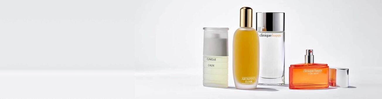 Clinique tiene tres colecciones de fragancias distintas. La icónica Clinique Happy™ Collection de la marca se define por sus notas cítricas, florales y frescas. La estrella de esta colección para sentirse bien es el superventas Happy Perfume Spray,, un aroma vibrante que levanta el ánimo con cada rociada. La colección Aromatics Elixir™ es una compleja mezcla de notas seductoras y cálidas. El clásico de culto Aromatics Perfume Spray siempre causa sensación. La Colección The Calyx™ ofrece un aroma enérgico y audaz con notas cítricas, rosas y exuberantes notas verdes.