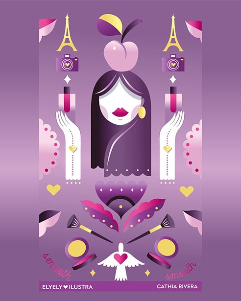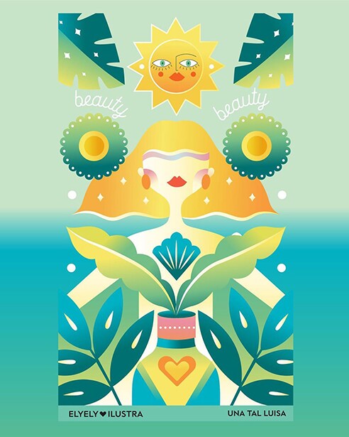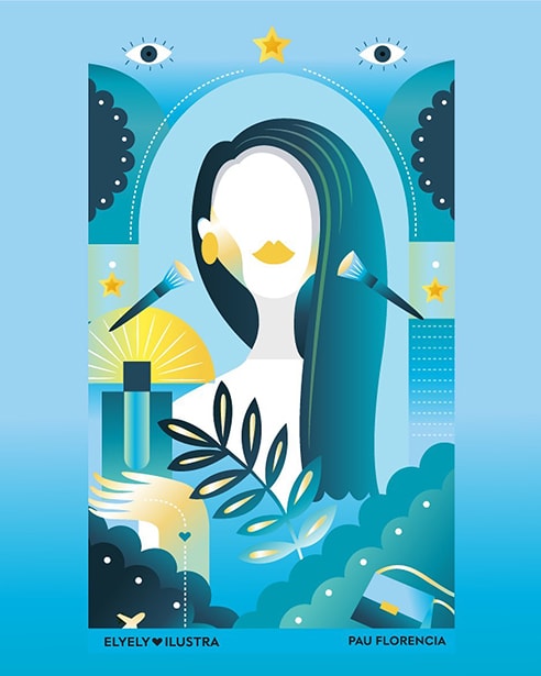 Entre los verdes, azules, naranjas, morados y blancos de los cartuchos de Clinique iD, así como siluetas femeninas empoderadas y amor por la belleza en todos sus aspectos, encontramos a @ElyElyilustra; una mexicana muy talentosa llamada Melissa Sánchez, quien como Clinique comparte valores como la fuerza, el empoderamiento de la mujer y por ende los atributos de la mujer, en especial la latinoamericana.