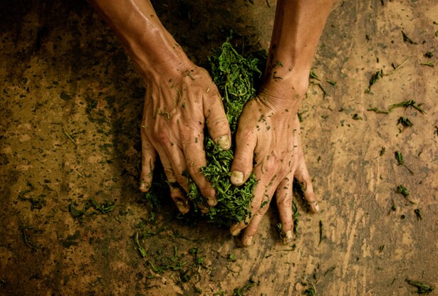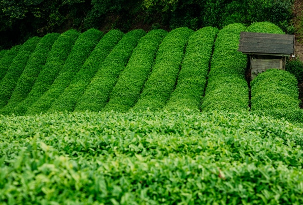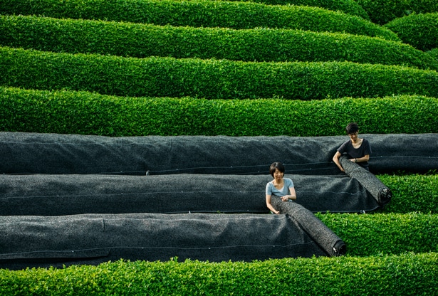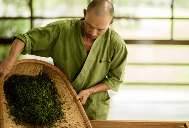 En la granja familiar Obubu Tea en Kyoto, Japón, han perfeccionado el delicado proceso del cultivo del Gyokuro, también conocido de forma más romántica como el rocío del jade. Esta técnica revolucionaria consiste en -justo antes del tiempo de cosecha-, a finales de Abril, recubrir el cultivo completo de Gyokoru durante tres semanas con una costosa sombra negra. Así se previene que la luz directa de los rayos del sol toque las verdes hojas disminuyendo el proceso de la fotosíntesis, logrando cambiar la química de las hojas del té, generando niveles superiores de cafeína y teanina, la clave de los componentes que ayudan a energetizar, suavizar y proteger las células de la oxidación y la irritación. Después de tres semanas en la sombra, solo las hojas más jóvenes y vitales son cosechadas a mano y vaporizadas, después son enrolladas de forma artesanal para dejarlas secar al aire y así permitir que los verdaderos componentes del sabor del té se liberen completamente.