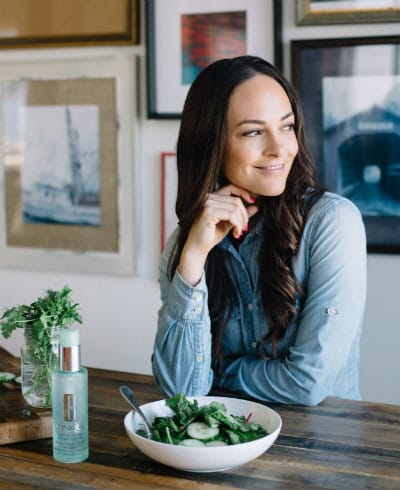 “Una piel saludable necesita una dieta rica en ingredientes que estimulan la hidratación como son los ácidos grasos omega 3. También son importantes los que promueven la producción del colágeno y la elastina, como es la vitamina B, mientras que los oligominerales reparan, protegen y estimulan la regeneración celular”, dice Kelly. Para una estrategia completa de adentro hacía afuera, ella hace énfasis en el cuidado de la piel, y al igual que en sus recetas de alimentación saludable, considera que los ingredientes son lo primero. “Entre más sencillos son los componentes, mejores son los resultados”, comenta. Ella utiliza cada noche un limpiador para pieles delicadas enriquecido con un bálsamo de aloe vera. Y busca que su hidratante contenga escualeno, caléndula y ácido hialurónico para nutrir profundamente.
