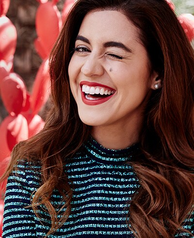 Pam no quería que todo se viera “matchy-matchy”, pero Matin le aseguró que el delineador azul resaltaría el color marino de la parte superior de su look de una forma increíble en todos los sentidos. Él eligió el High Impact Custom Black Kajal en Blackened Blue, que da un matiz marino profundo. “Este es un delineador con un acabado mate, que lo hace ideal para una gran noche y que te durará durante el baile, la cena y todas esas selfies tan ocurrentes”.