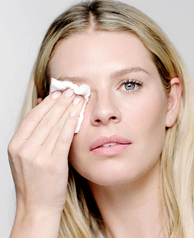 Para remover la mascara de pestañas no frotes o des tirones sobre ésta, ya que esto puede dañar o irritar la piel delicada ubicada alrededor de los ojos. En vez de esto, mantén el algodón con el producto por lo menos 10 segundos sobre las pestañas para poder darle tiempo suficiente a la fórmula para romper y disolver el maquillaje.