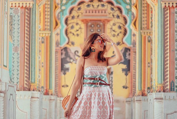 ¿Qué mejor forma de turistear por Jaipur que en un tuk-tuk rosa? Aashna Shroff y Riah Daswani estuvieron más que listas para pasear.